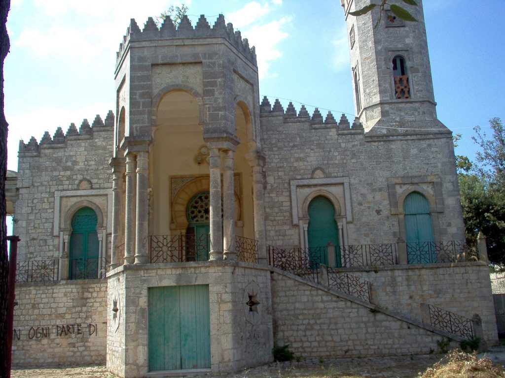 Destinata originariamente a residenza estiva familiare e sede culturale per lo studio delle tracce della cultura orientale in Puglia, al villa ospitò numerose feste mondane, durante le quali il proprietario era solito accendere sulla cima della torre-minareto un lume ad acetilene che simboleggiava la luce della cultura, perché voleva che la struttura brillasse come le notti d’Oriente.